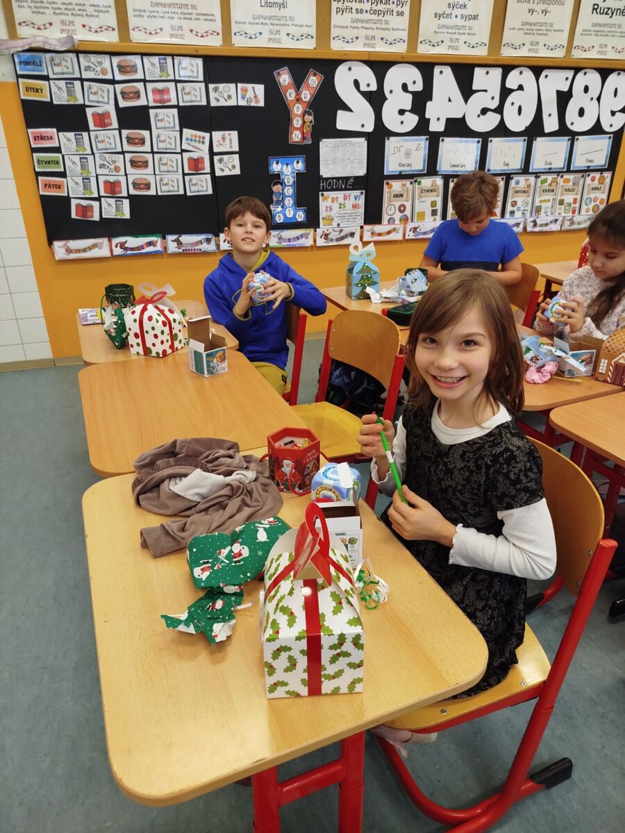 12 ledna, 2026V předvánočním týdnu toho děti ze 3.B stihly opravdu hodně. V Šestajovicích jsme vyráběli dárečky (svíčky, sůl do koupele, …), zúčastnili jsme se celoškolního „dne svetrů“, vyráběli jsme domácí krmení pro ptáčky, které jsme jim pak byli i pověsit. No a v neposlední řadě k nám přišel Ježíšek. :)